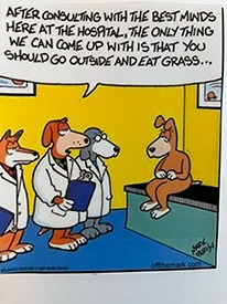 Once there, the Experts gave Her a thorough examination. The Powers that Be prodded and poked. She had Blood Tests. Eye exams. They opened Her Mouth. They checked everything They could think of. Finally, They went back to the Tried and True . . . and recommended She eat grass. What a Concept! Living unstuck.