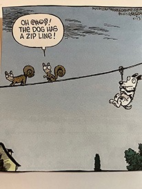 My Cousin Blanche had another take on the entire Situation. Over the years, She had Plotted. Scouted. Spied. Chased at top speed. All without catching a Single Squirrel. Then, She saw a video of a Zip Line… and She was hooked. Literally. Mastering this technique took Some doing, but She is now an expert. Those Critters didn’t stand a chance. That’s living unstuck.