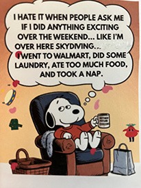 I’m curious: Do You like to recuperate from the Week’s activities like Snoopy? Or are You Four-On-The-Floor all the time? I say: Take some Time for You. Park Your Carcass, as My Mom’s Aunt Mary would say. Sit for a time. You deserve It. Living unstuck. #unstuck-living#lazy-weekends
