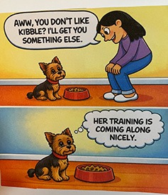 I started out My Life with a certain type of Kibble. And I love it. If Mom buys other brands, I sigh and walk away. I have even been known to Hold Out for Days. She finally gave up and added chicken. Rice and pumpkin are nice add-ons too. All topped off with something homeopathic, so I don’t get a GI upset after munching on things on Our walks. I’m here to report Training is going well! Living unstuck.